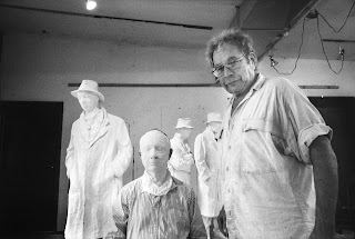 I promise that I will eventually return to the Riotous Baroque, but for now I want to make a plug for the exhibition that I am curating at the Ohio State Urban Arts Space, which runs from August 6th to September 12th. The exhibition is called Plato’s Cave-Segal’s Studio and is a creative juxtaposition between two photographic series by Donald Lokuta, a New Jersey-based Photographer and Artist. The aim of the show is to see how in his series of photographs set in the studio of sculptor George Segal (1924-2000) Lokuta explores the theme of what he dubs ‘the unseen’,a theme that he also approached in his series inspired by Plato’s analogy of the Cave. In many ways the main point of the exhibition is to blur the boundaries between the two series and to show how Plato’s Cave works in Segal’s Studio. This is done not only by emphasizing the various realities in the artist’s studio  – from the creative process, to works in progress to the finished pieces on display – but also the variety of roles at work within these realities, given that Lokuta not only photographed Segal at work, but was also his good friend, assistant and sometime model. For example, in this photograph of the sculptor at work you can see the cast of Lokuta to the left, while behind Segal is a cast of the artist (the figure with his hands in his pockets), that was actually cast by Lokuta.