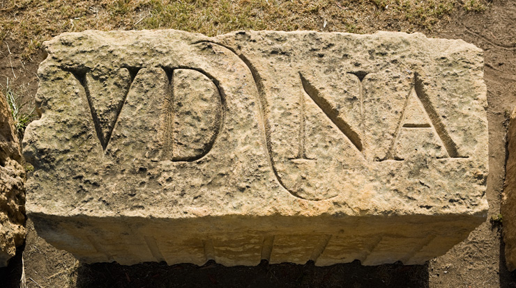 For Ian Hamilton Finlay, Latin may be borrowed from Virgil’s Eclogues and inscribed on stone in his garden of Little Sparta, made up to attack the Scottish Art Council or deconstructed and broken down at the level of the word, such as works based on the Latin word UNDA (Lat. ‘wave’).