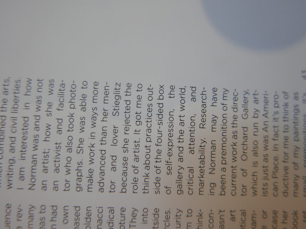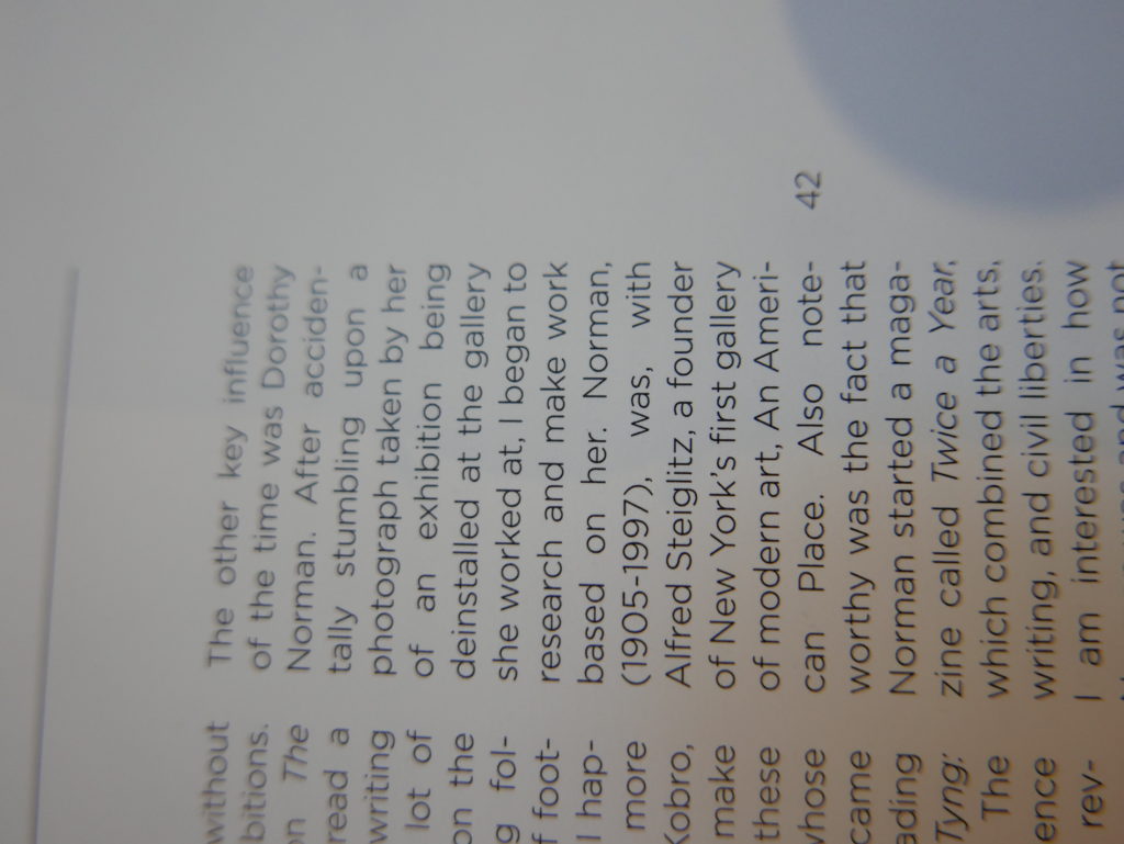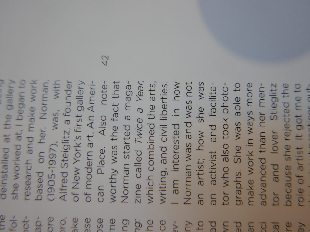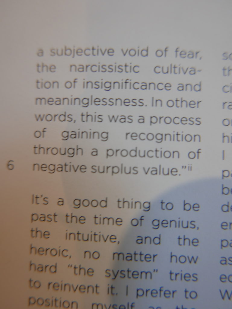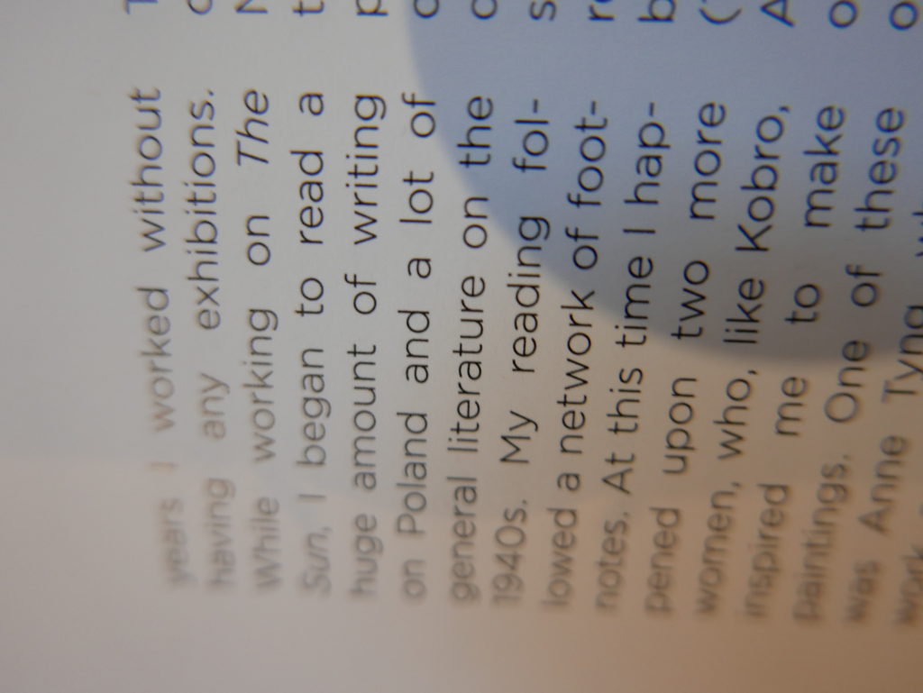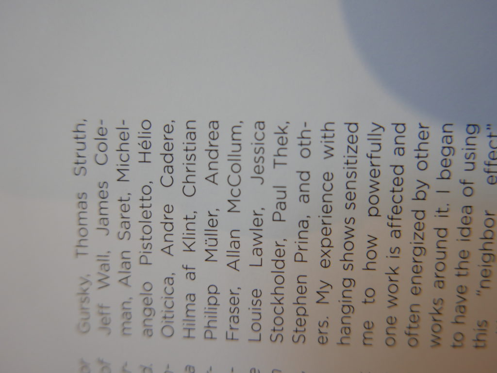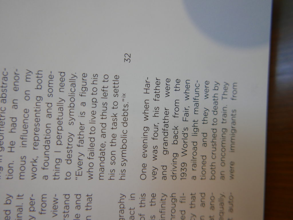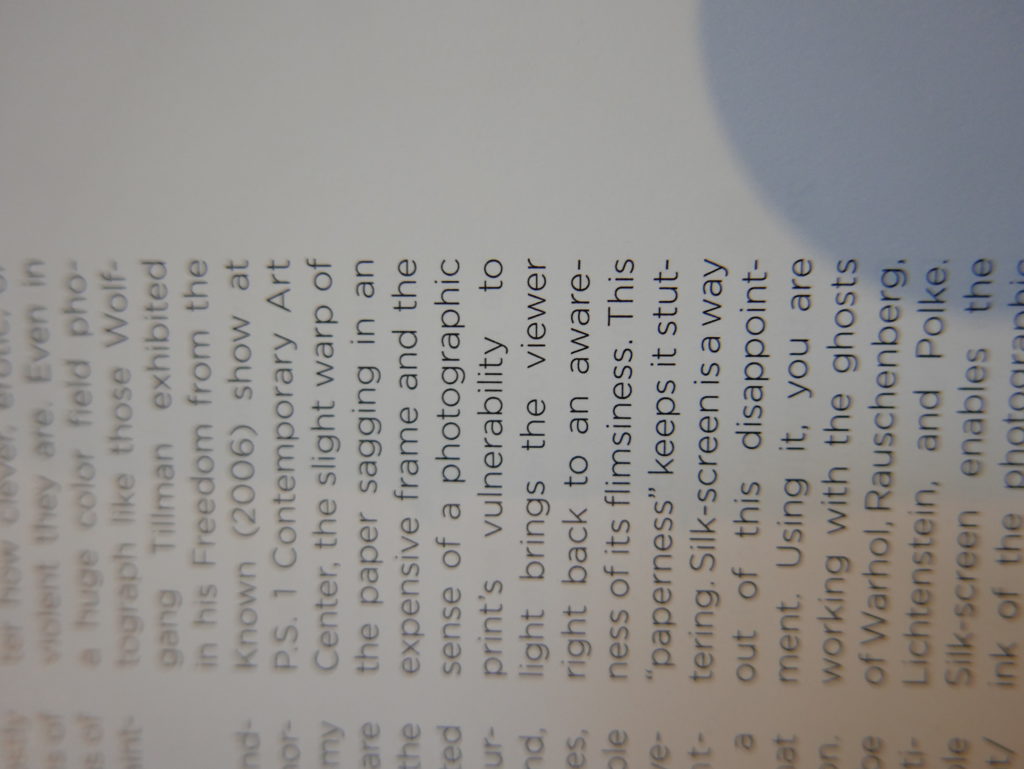 The only way I could get my hands on R. H. Quaytman’s early book-work Allegorical Decoys was by the circuitous route of Ohio State Libraries’ Interlibrary Loan system. When it finally arrived this morning, I discovered that I was not able to check the book out of the library and so I had to read it there and then on the spot. Knowing that I would want to return to the opening essay, I decided to take a series of snapshots of overlapping sections of the text. There are many things to say about this text, but I was especially drawn to Quaytman’s description of her time at the American Academy in Rome. It was there that she initiated her series of works as chapters as a response to what she describes as ‘painting’s status as an isolated target of a monocular and disembodied eye’. She continues to unpack this metaphor by evoking the monstrous figure of the Cyclops: ‘What mechanisms are at work in painting that assume an audience of one male monogamous Cyclops who will never leave?’. In the spirit of Quaytman’s attack on Cyclopean forms, here is a slide show of my multi-perspective photographs of her essay.