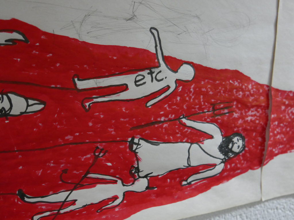 I am still not really up to discussing my confrontation with the gun-wielding ‘educators’ on campus yesterday. Sure there have been a few reports of the interaction in local media and friends have told me that I was on the news last night, but for the purposes of this post I am still processing the event and want to make sure that I weigh my account responsibly. That said, today I want to reflect on the class that I was late for thanks to the confrontation (I kept saying to the reporters and the gunslingers that I had to leave as I had to teach): Art 4004/5004: Drawing Ideas (with artist and professor Suzanne Silver). The students in the class were presenting the last of their assignments after a semester in which they engaged with Plato’s philosophy and the process of drawing. Before yesterday there had been assignments on the topics of Form, Idea, Mimesis, Dialogue (one project from which I posted about a few days ago) and Pleasure. Their final assignment was on the topic of Myth and specifically how one single drawing or work could some function in a comparable way to how Plato uses myth in his dialogues, specifically his Republic and the concluding Myth of Er. We also asked the students to think about ideas of myth, truth and falsehood and the myth of the artist. Below are some photos of their projects, ranging from myths from other cultures, critiques of art education, personal myths and social media, as well as several works that re-worked earlier projects into sophisticated investigations into the myth of the artist. There were also some projects that engaged directly with Plato’s work, from his myths (e.g. the Cave) as well as his ideas about desire. While I spent most of the class feeling nauseous from my heated run-in with armed-activists, as the class progressed, from work to work, myth to myth, I slowly started to gain some perspective, and finally, a distinct sense of hope that only the freedom of art, creativity and thinking can give us during these very dark times.