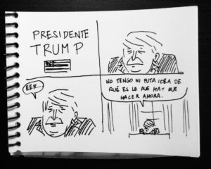 – Pablo Ríos, sketch for Presidente Trump: Dios perdone a América