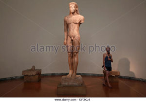 a-tourist-visits-a-hall-with-a-kouros-statue-inside-the-national-archaeological-gf3kj4 8th February 2017