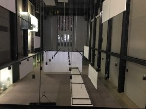 Cephalus: The photographs don’t give any idea what it is like, although the video shows the panels moving. But there is no way to show all of it, it too difficult to encompass such a large three-dimensional event. The more I think about it, it was the noise that I found most interesting – the noise was really quite loud and made you stop and it also made you look at the walls to see if there was a relationship between the noise and their movement. The noise made you realize something was going off. Of course, you can hear the noise in the video, but you can’t capture the three-dimensional aspect of the noise as experienced with your two ears in the space. You can’t walk around it while watching it on your laptop. Here you can walk around it and still hear the noise as a soundtrack to the whole thing.
