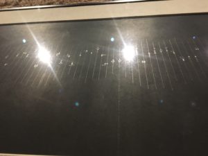 What did you make of Lala Rukh’s beats, her ‘indexing sonic ruptures and melodic sequences as a graphic sensibility? (As Natasha Ginwala puts it in the documenta 14 Daybook). Maybe you encountered them alone or with others, taking them in separately or together, like some kind of chorus, either way, when you left the space of dimly lit Rupak drawings, the punching sound of the animation of the same name and the alcoves of Hieroglyphics, did you look back at those two drawings visible through that little window? Did this pair make you think of Aristophanes’ myth in Plato’s Symposium? Or (even better) Felix Gonzalez-Torres’ Perfect Lovers? Do you like the idea of these references stretching to your own photograph, with its couple of glaring lights? Does Ginwala’s Daybook entry on Rukh beginning as it does by quoting Nabokov on ‘the gray gap between black beats: the Tender Interval’, make you think of heartbeats? Or mere punctuation? We’ll see.