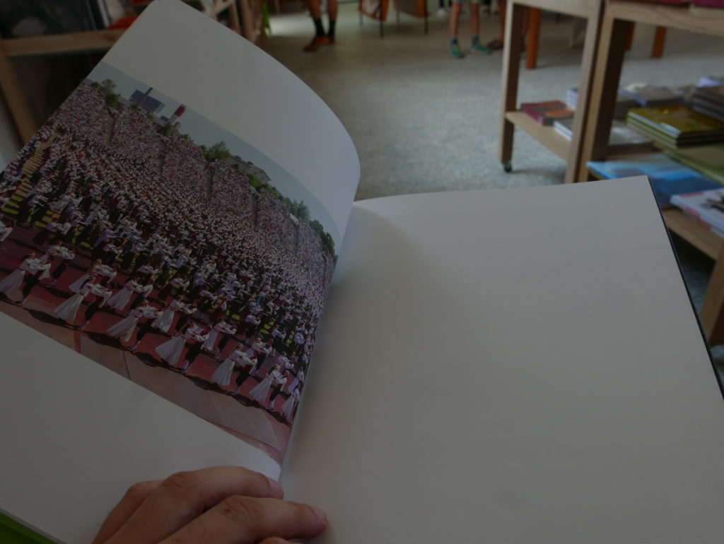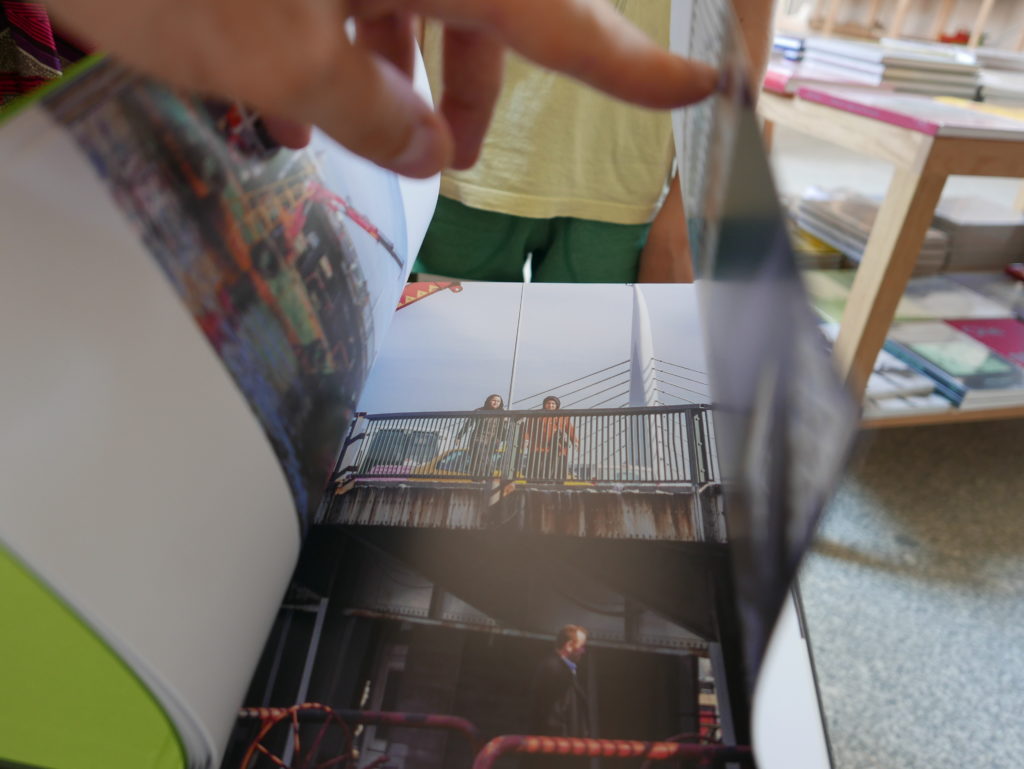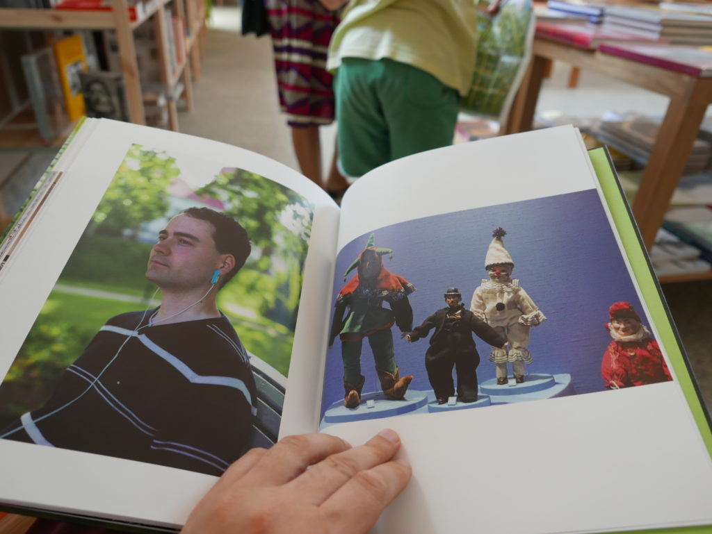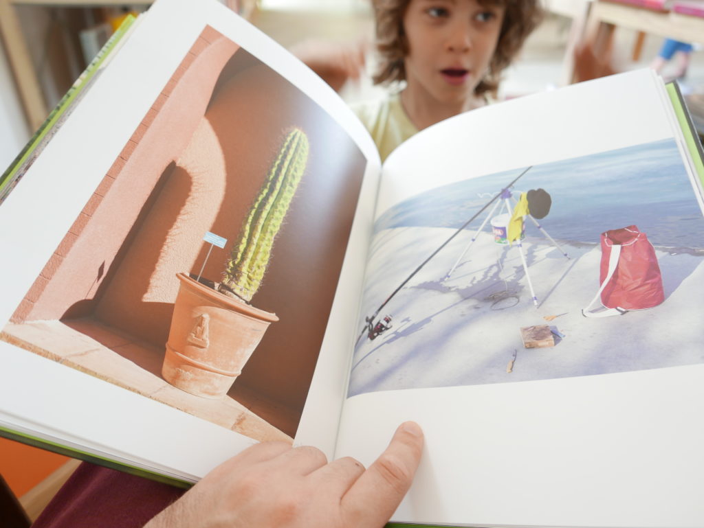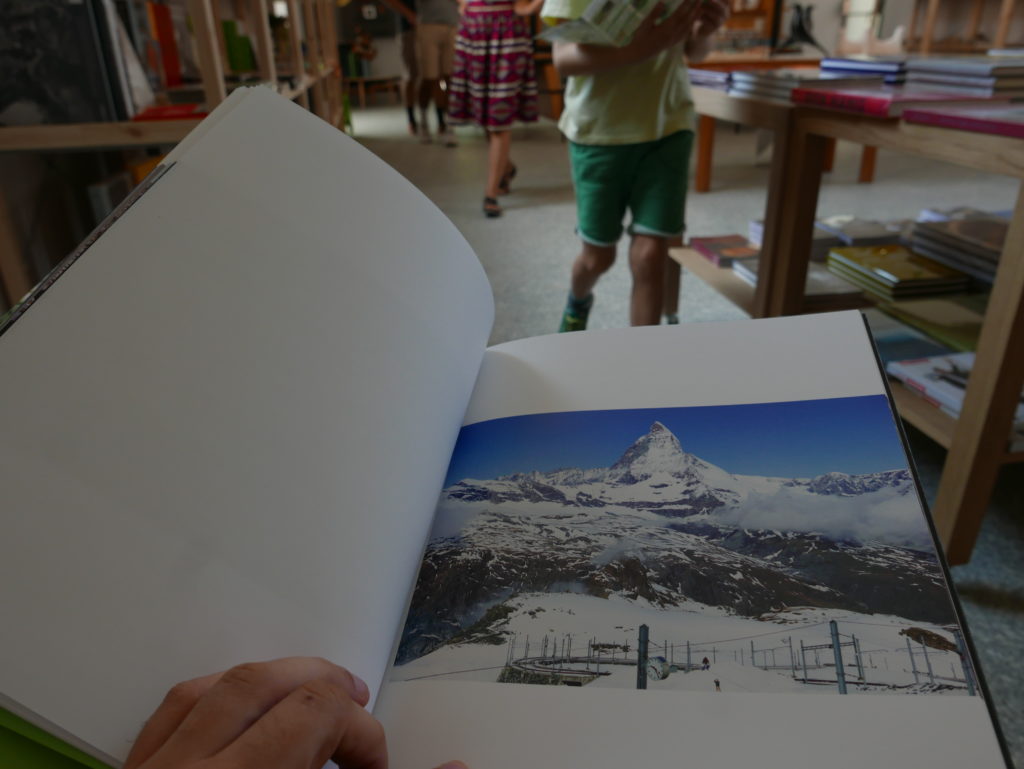 Then while leafing through the book Mathematics in the pop-up bookstore, I again invited Eneko to intervene, this time in a series of photos I took of each page of the book (knowing I was going to post about the exhibition today), as he and Rebeka impatiently waited for me to finish, so we could go and explore more of the gardens (waiting for me and my blog has been one of the main features of our trip so far…)