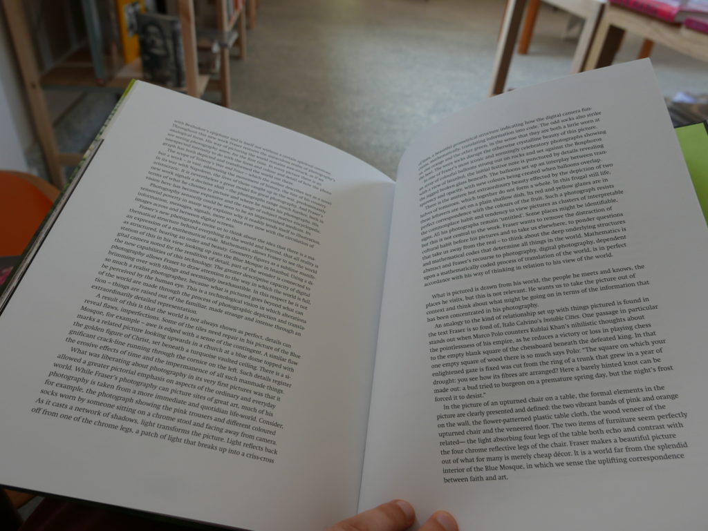Obviously, it goes without saying that these photos of photos and photos of photos in a book are pale imitations of the real things, yet these staged interventions made me think about how the ideas of art imitating life and life imitating art can bring us back to the same texts that inspired both Fraser and Tegmark (in response to Adams). Here is a passage from Tegmark’s book: