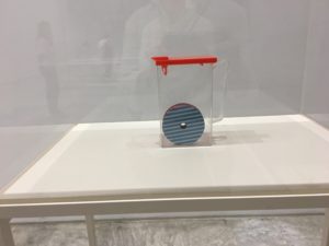 Were you especially excited to stumble across the work of André du Colombier? What drew you in more, his words or his colors? To the alternation of red, red and white or the words un | jour | rouge? Did your eyes prize out the words from the copper on the wall or lose them in the puddle of blue on the floor? Judging by this photograph, were you not also intrigued by his wordless objects? (What do you think Posidippus or Ponge would say to these poetic objects?) What did you make of the repeated figure of the frying pan piano, as image and object (and more)? As for the roll of red tape enclosed within an empty red water pitcher, do you think there is some kind of code? Do you think if you knew the French for ‘tape’ and ‘pitcher’ it would solve Mr Dovecote’s riddle? Is there word on the tip of your tongue, between your teeth, or on your dry lips? We can always choose a word from another language to whet our curiosity.