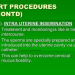 - 2). INTRA UTERINE INSEMINATION. Treatment and monitoring is like in timed intercourse. The sperms are specially prepared and introduced into the uterine cavity via a catheter. This can help to overcome cervical mucus hostility.