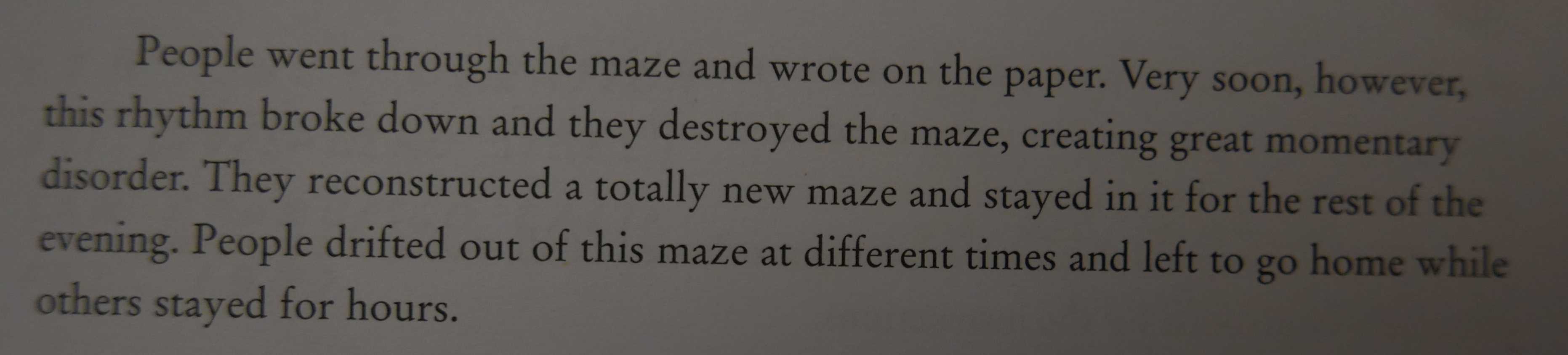 You tell the students to go through the maze, to come out whenever they wanted and pass by the briefing area at the front of the classroom, which comprised a table covered in paper and pencils. You ask the students to write whatever words came to mind and go back through the maze again.