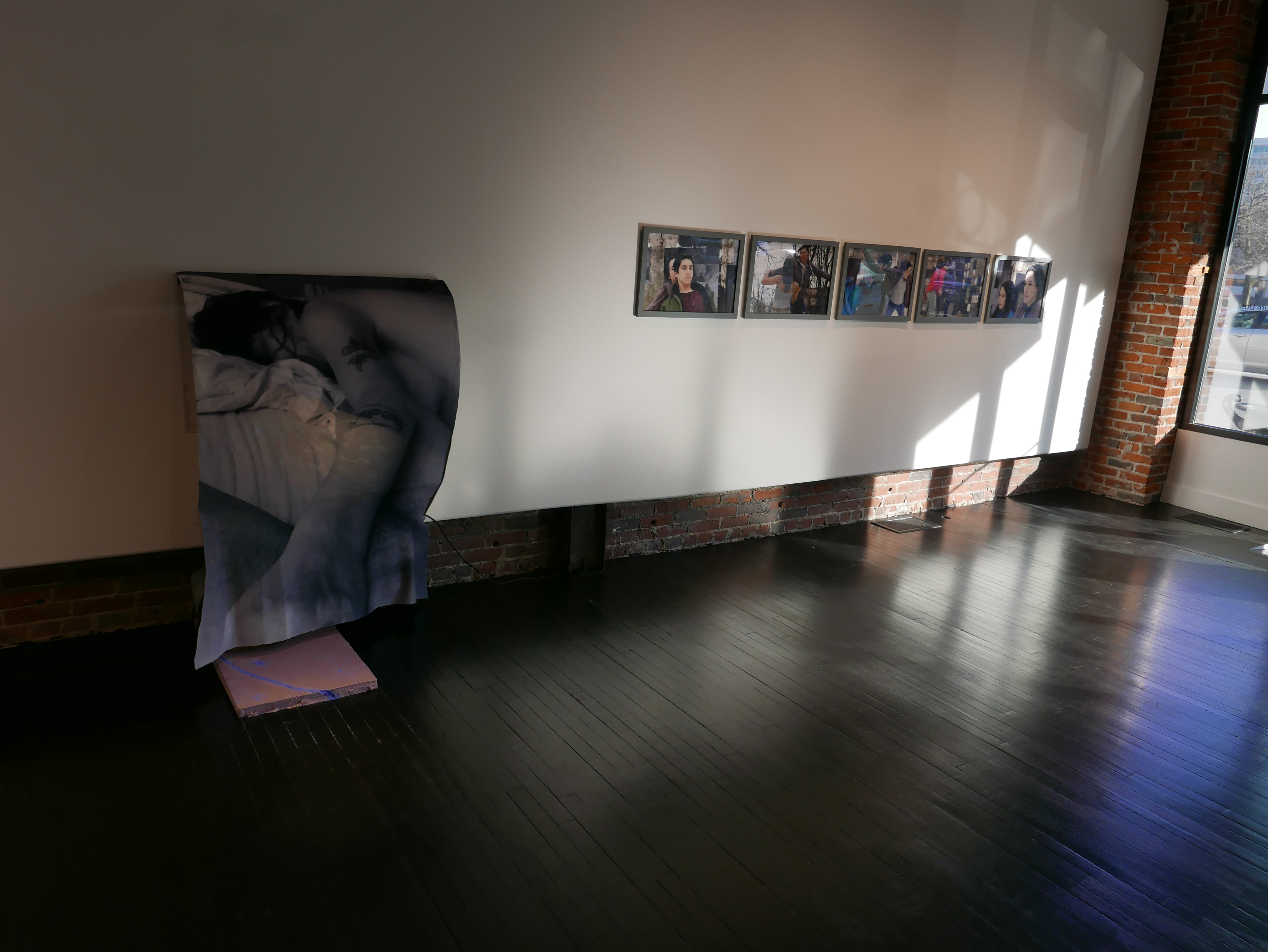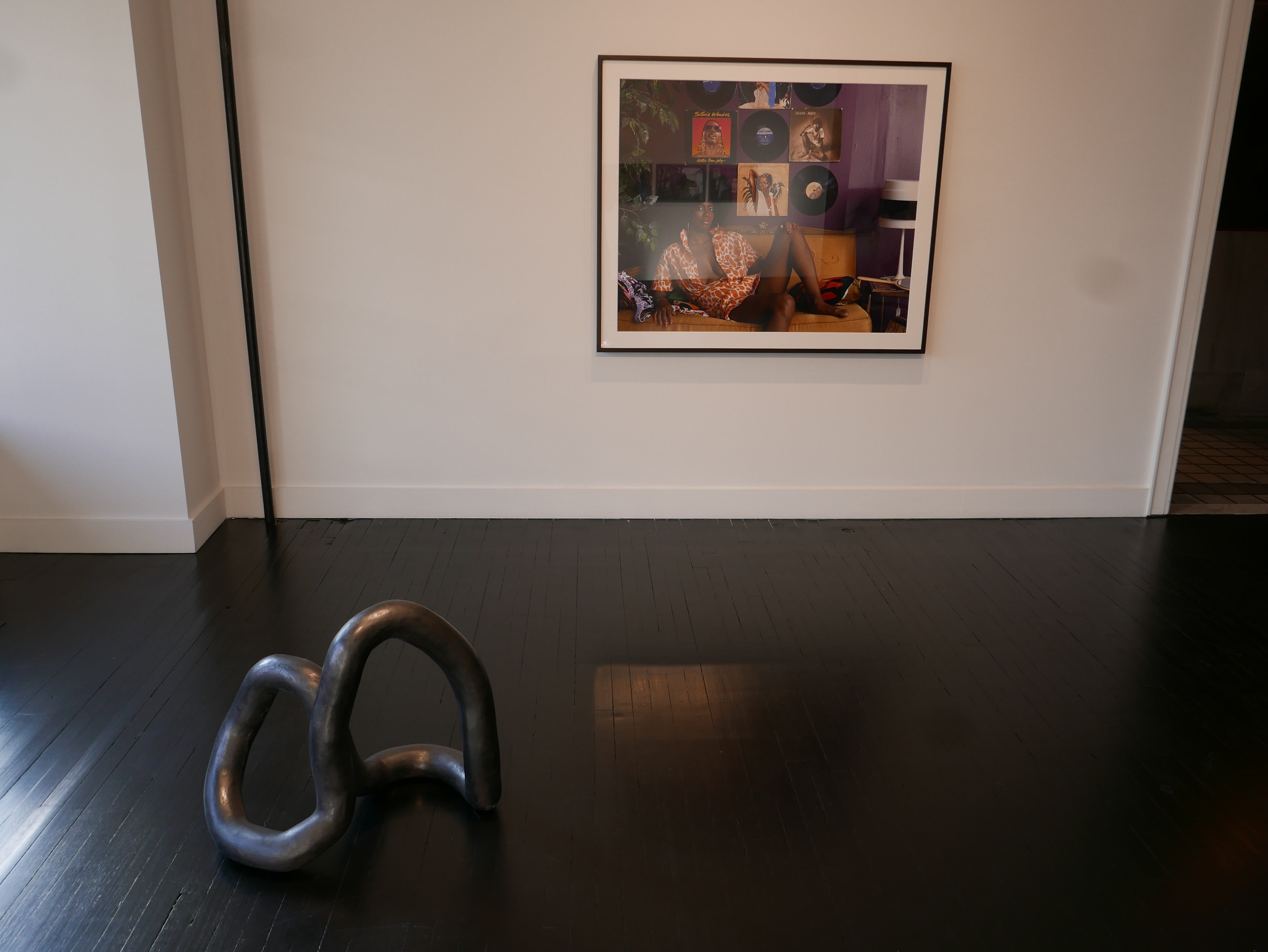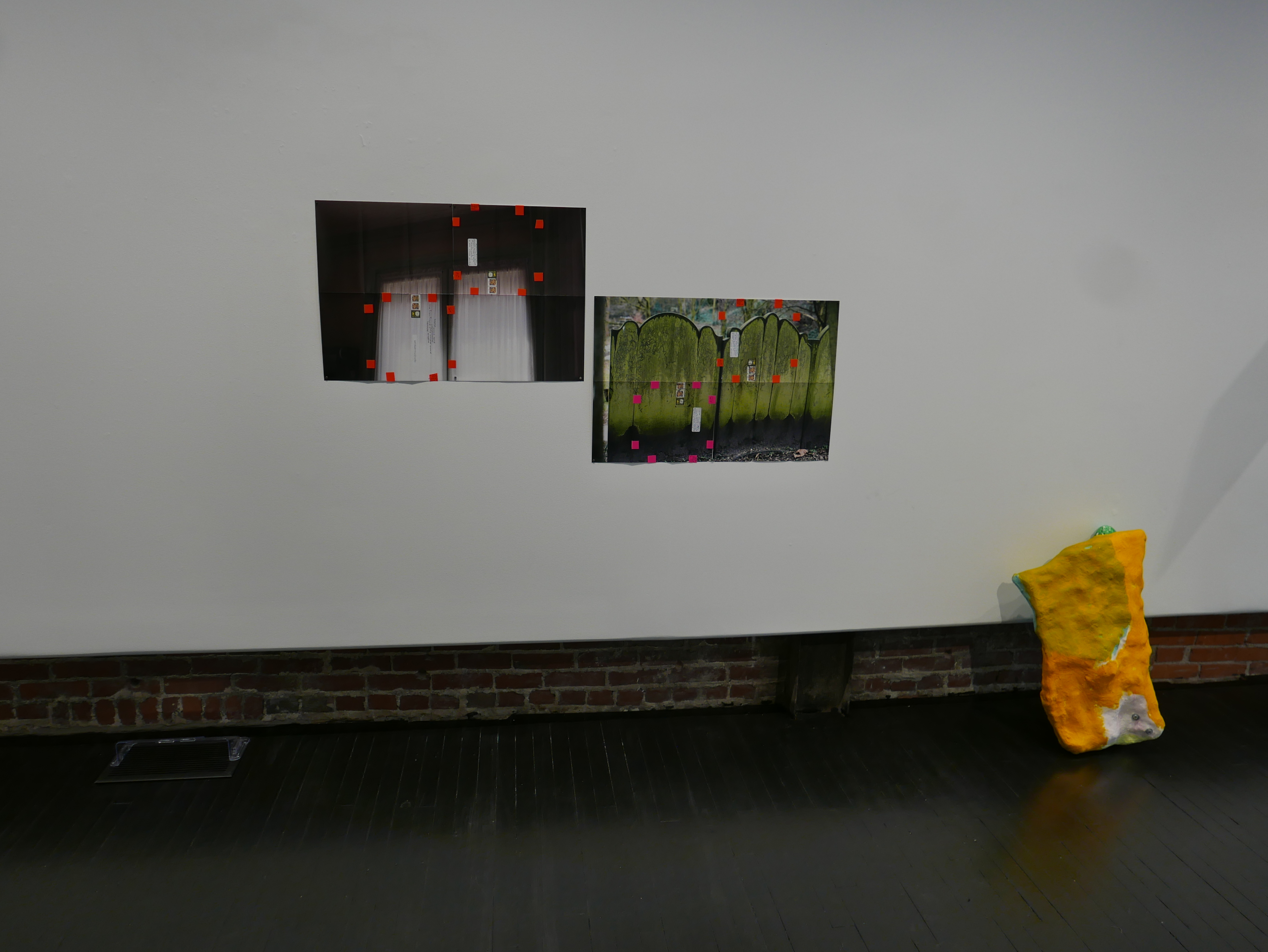 I thought of this untold epic of the mother as I walked around the exhibition Repeat Pressure Until at the Angela Meleca Gallery earlier this week. Curated by Sheilah Restack, this group exhibition includes works by Moyra Davey, Stacy Fisher, Pati Hill, Dana Hoey, Vera Iliatova, Hein Koh, Dani & Sheilah Restack, Carolyn Salas, Suzanne Silver, Mickalene Thomas, Kim Waldron and Carmen Winant. The exhibition was also the context for the launch of Mother Mother Volume 2, edited by Sheilah Restack, as well as a performance Pressure Points. As I peered at the works, on the walls, the floor and the spaces in between, with Thetis’ untold story in mind, I fixated on two aspects of the exhibition. Firstly, some minor details of individual works and, secondly, the way the works seemed to lean against each other for support. It is hard to explain exactly what I mean by the latter, but I knew it had something to do with Thetis and Achilles, and more specifically, Thetis without Achilles. I looked for help in making sense of this feeling by turning to the text/screenplay of Moyra Davey’s Hemlock Forest.