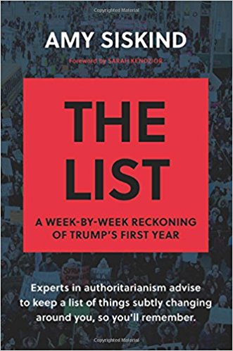We are currently reading Amy Siskind’s brilliant snd terrifying book The List: A Week-By-Week Reckoning of Trump’s First Year which, along with her original website The Weekly List: This Is How Democracy Ends, is a vital reference work as we write No Philosopher King: An Ancient Guide to Art and Life under Trump.