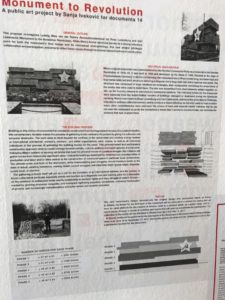 On this particular day, something at the museum makes him later than usual for his daily meeting with Bia and Nina.He found out that documenta 14 had infiltrated his favorite museum with some contemporary artworks that at first seemed only tangentially related to his beloved death-drive. Yet, suddenly, he came across two works, among all the death-masks and tombs, that gave him a great idea for that day’s performance. The first was the poster for Sanja Iveković’s Monument to Revolution, which he had seen in the flesh back in Athens.