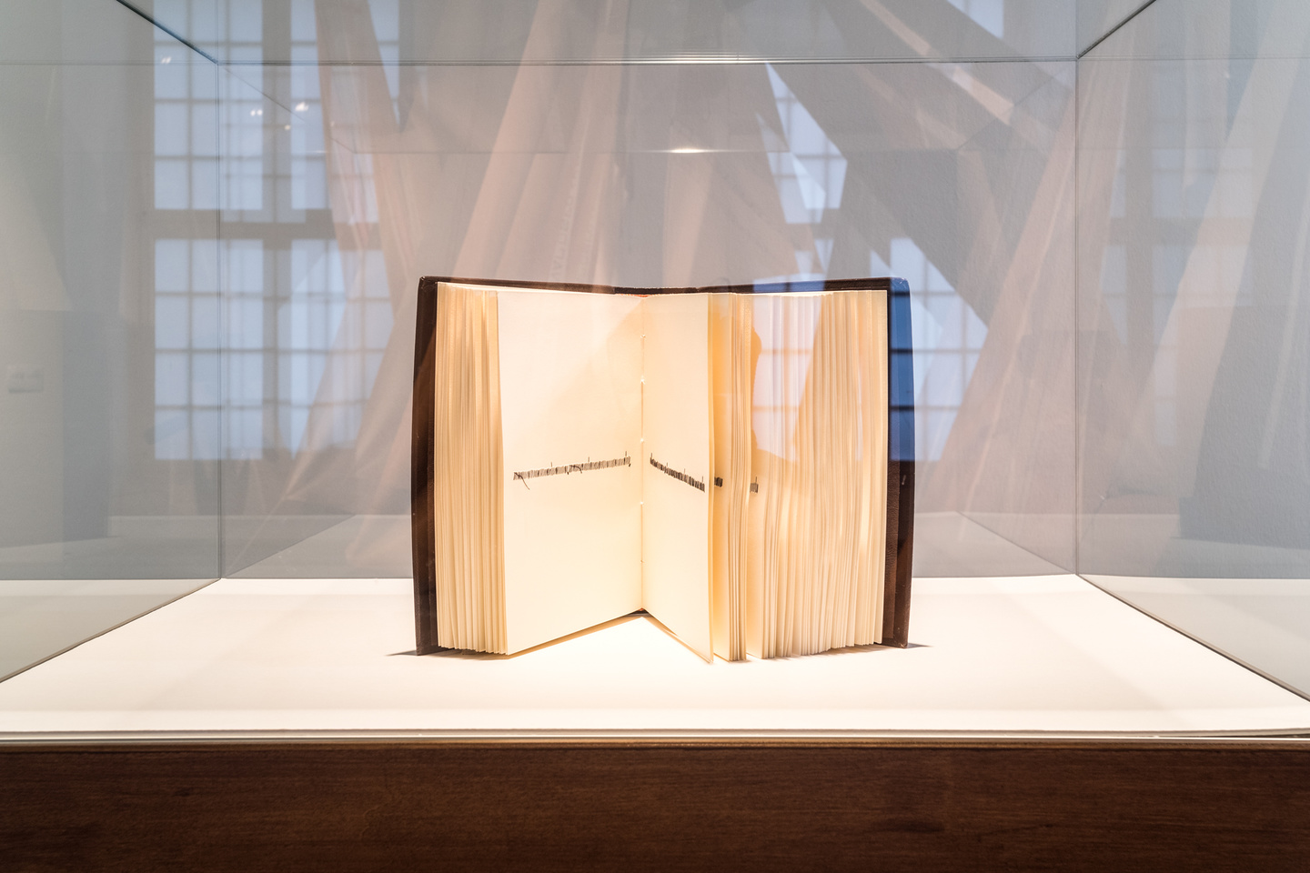 After they had all paused to remember Nina’s song, Bia jumped at the chance to announce: “Well, I was named after Bia Davou”, swiveling around and pointing at the dramatic installation Sails (1981-2) which was reflected in the glass case of Nina’s namesake’s book. She described how her parents loved Homer’s Odyssey, especially the central love story of Penelope and Odysseus, united in their cunning. Bia described how her mother found out that Davou’s Sails combined woven quotations from Homer’s poem and wanted to meet the artist. Our Bia’s mother and Davou became close friends and when her daughter arrived, there was no doubt that she would be given the artist’s name.