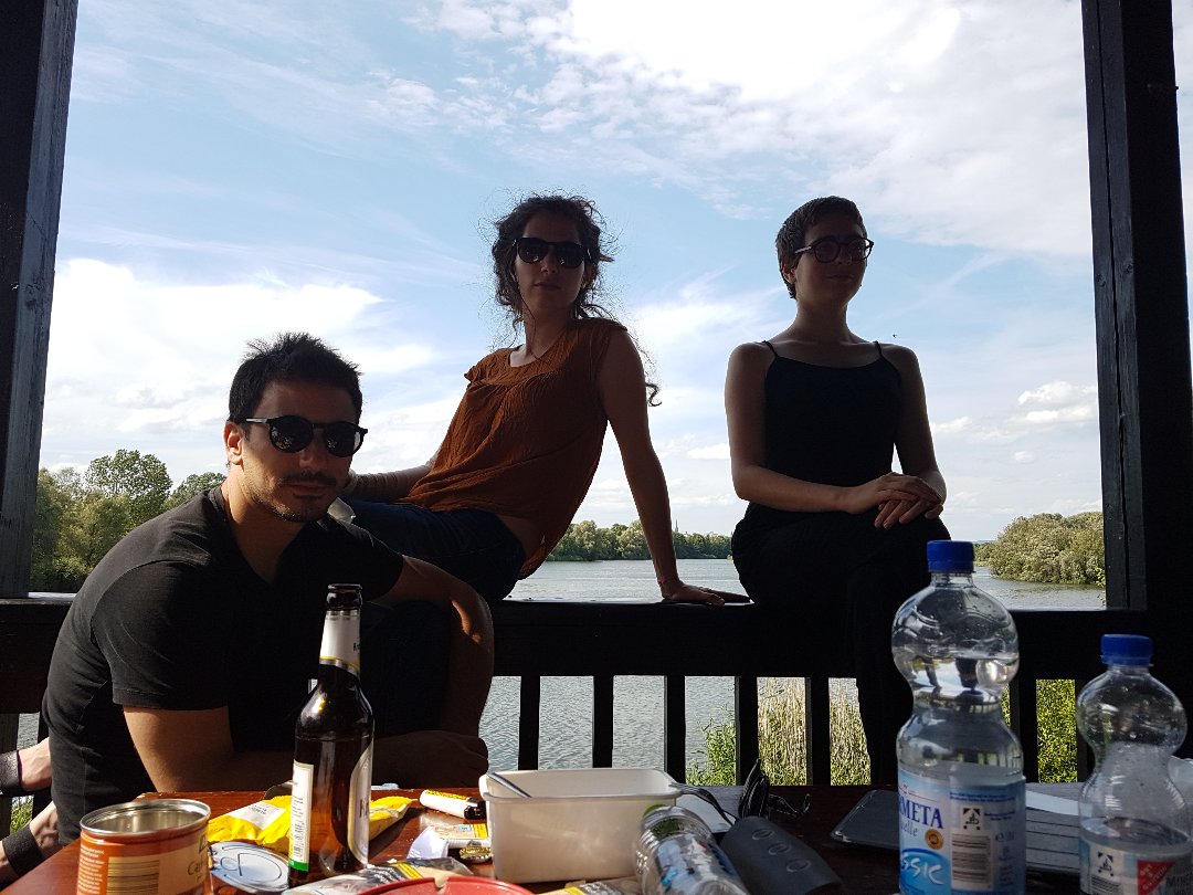 Bia was watching 14 simultaneous episodes of Game of Thrones, which was driving her slightly crazy as she hated this overrated show. At the same time, Nina and the documenta 14 official were, as far as we can tell, embodying a documentary about ancient comic and tragic masks, contorting their faces into humorous and miserable caricatured shapes.
