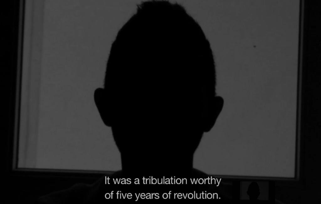 Each week, Syrian filmmaking collective Abounaddara uploads a video onto their Facebook page. Depicting glimpses of life under siege, monologues from victims and survivors, or ironic montages of the grim realities faced in the ongoing catastrophes, the films—what they term “emergency cinema”—aim to shed light on the individuals affected by those events. The videos are short, ranging from a minute or so to under ten, and each one different, be it in content, motive, or style. The anonymous, self-funded, and self-taught filmmakers work from within Syria and without. This recent one, “A Dream’s End,” follows a format visible in some of their other videos. It begins with the silhouette of a man in close-up, backlit against a bright window. As with most of the videos, this one has little context. It begins, in media res if you will, and we hear the man speak. Although the video’s beginning or end might seem arbitrary, the man’s narrative attempts to provide a conventional structure. He describes his decision to leave Syria, the steps he took to find a way out, the arduous journey through checkpoints and across the border, and then shares his disbelief that he might actually be safe. As he talks, the camera, mostly steady, stays focused on his head, framed a second time by the window. Jump cuts punctuate his story like chapters, making the video feel much longer than it is, drawing attention to the details he describes. The videos often focus on the power of testimony—not so much over that of the image, perhaps, as much as a counterpoint to it. The collective’s manifesto argues for the right to self-representation; Charif Kiwan, the collective’s spokesperson, calls their videos “bullet films”—short, urgent, and aimed at breaking through the visual noise associated with media coverage of war and atrocity. His language is suggestive of the instantaneous, a desire to convey all at once, to collapse time. In one interview, Kiwan explains that a new mode of representation requires a new form of temporality. Some sense of this emerges in “A Dream’s End,” where the time of “ending” and “beginning” rub up against each other. Indeed, in Abounaddara’s video archive, begun in 2011 and which has since gained visibility and garnered awards, the tension between completion and continuation generates questions about the practices of viewing the collection, but more importantly also about a viewer’s response to it.