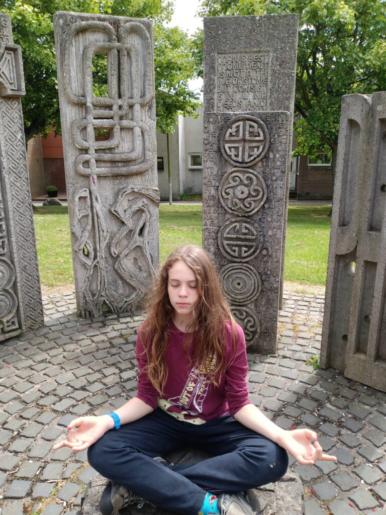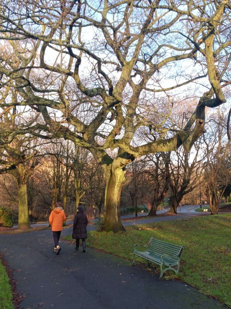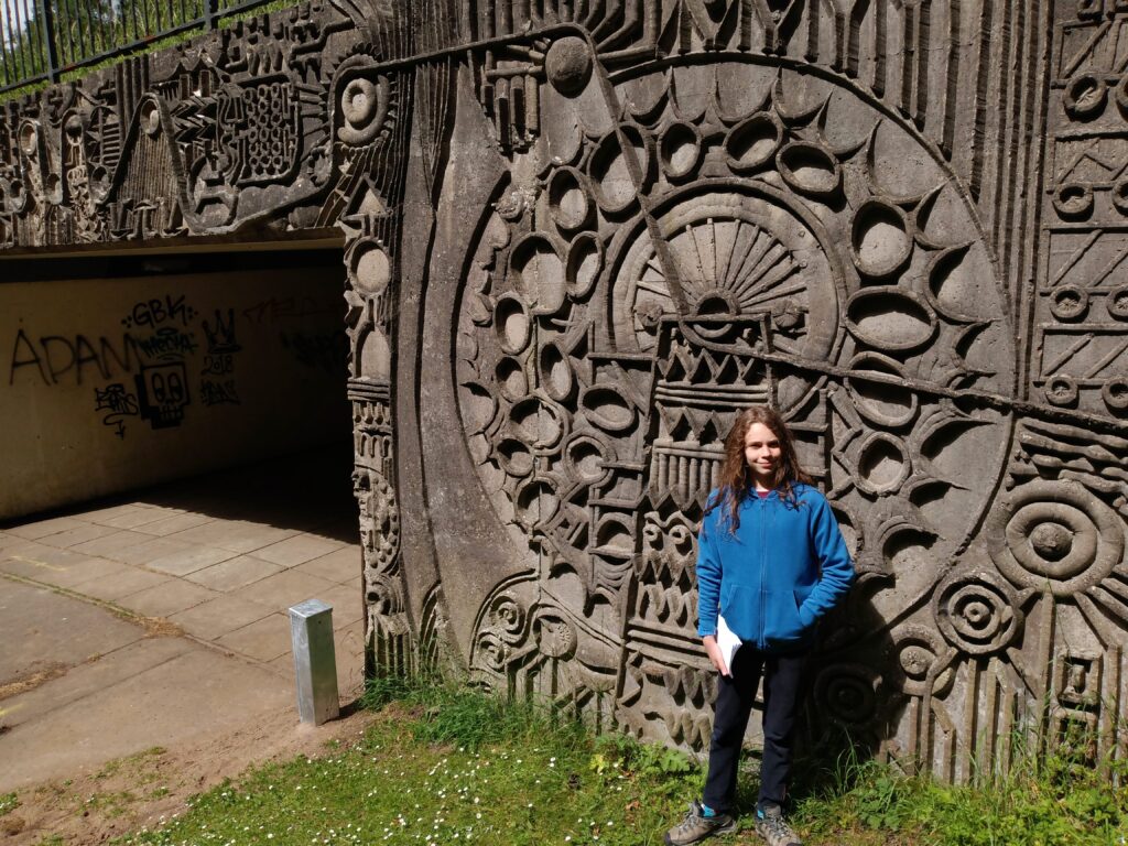 While Eneko and I found some of David’s works, we failed to find the one I was most interested in finding: a poetry path with a poem by Alan Bold, build over a desire line – the impromptu paths made by people in a community, creating a shortcut to save time in their busy lives. As someone who teaches arts education at Ohio State University in Columbus, Ohio, desire lines are part of my daily life, since everyday I walk across the Oval – a green space in the heart of campus, which has intersecting pathways, originally created from the desire lines made by students. There is a famous story of the artist Robert Irwin winning a competition to create an artwork for the Oval, in which he proposed adding metalic wedges on the sides of the paths, to create an undulating effect as students and faculty walked to classes, but the then University President Gordon Gee vetoed it because he asked ‘Where is the art?’. Irwin, whose work was grounded in ideas of perception and interventions in space, felt that this response was a triumph for his work and philosophy of art!